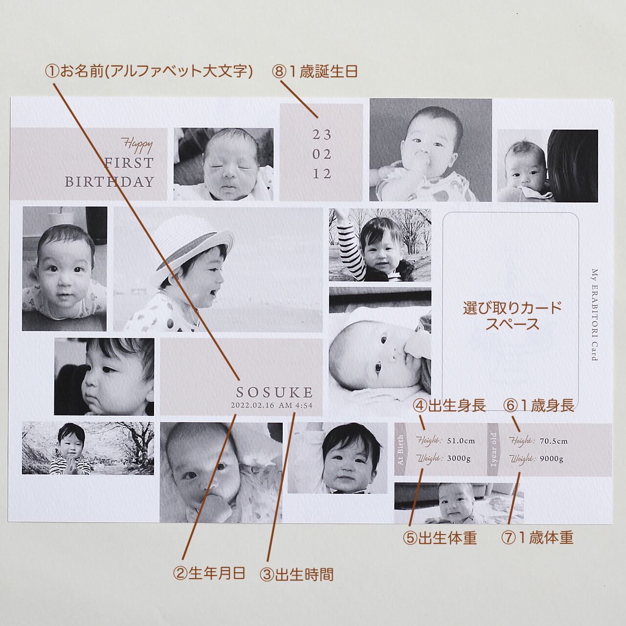 選び取りカードと12枚のお子様の写真を飾れる思い出いっぱいのポスター。