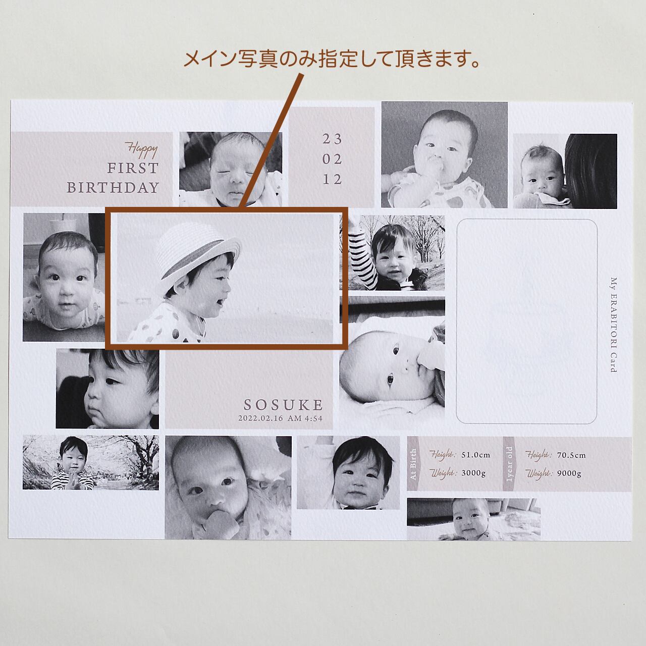 お写真と一緒に出生児の身長、体重と1歳時の身長、体重も記載できます。